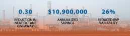 - Increased online Raman accuracy by improving Raman modeling practice and achieving precision to ASTM repeatability (0.13 psi for RVP, 0.20 for ON), resulting in $2,430,000 in annualized savings.